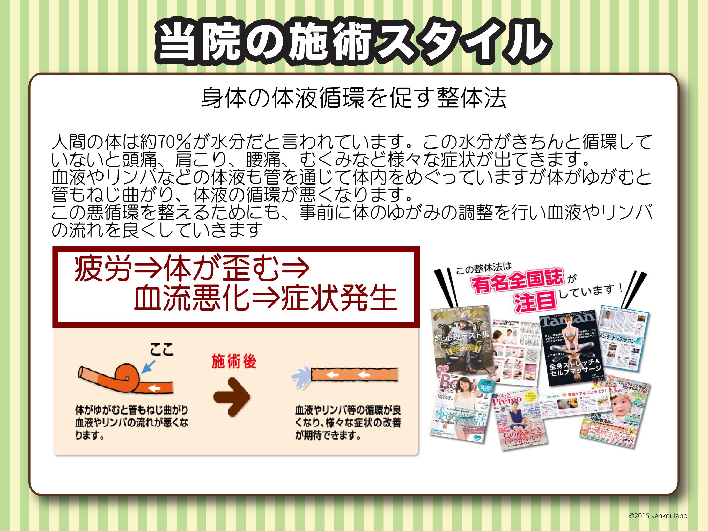 極端な施術は、健康面において良いことはありません。、短時間でお体に負担のない施術が理想です。当院でもこの考え方に基づいて正しい施術を行います。