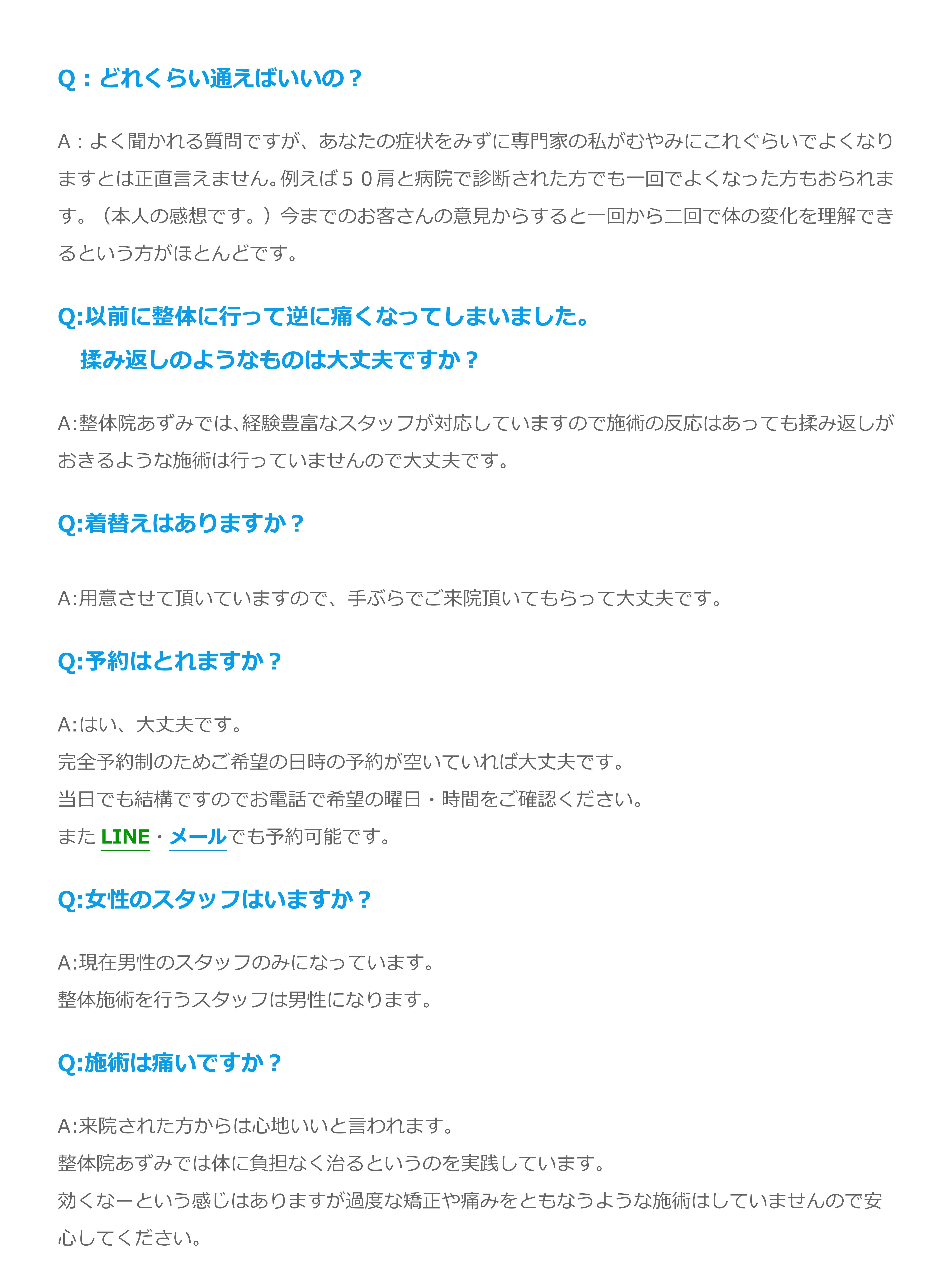 皆さん今まで様々な所で施術を受けたけど、うまくいかなかった、過去にひどくしてしまった。自分流でやってはみたものの全然改善しまいなど、施術に対して不安要素はたくさん!!しかし、それは今のお体の状態やたくさんある施術法が自分に合っているのかが分からなかっただけなんです!!正しい方法で自分の体の状態を知ることが大切!当院ではたくさんの方が施術を受けて、改善し喜ばれております。不明なことに一つ一つお応えできるよう、全力でサポート致します!!